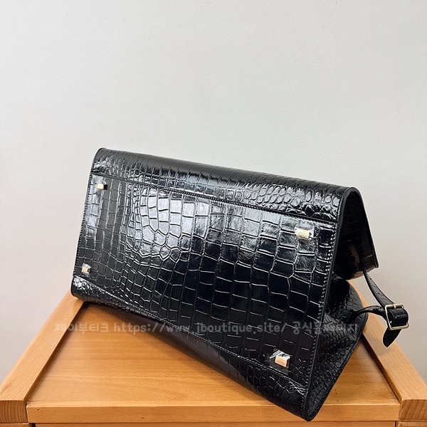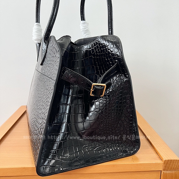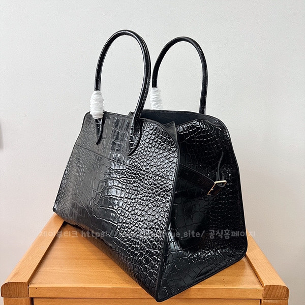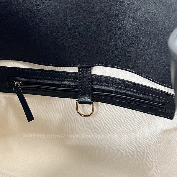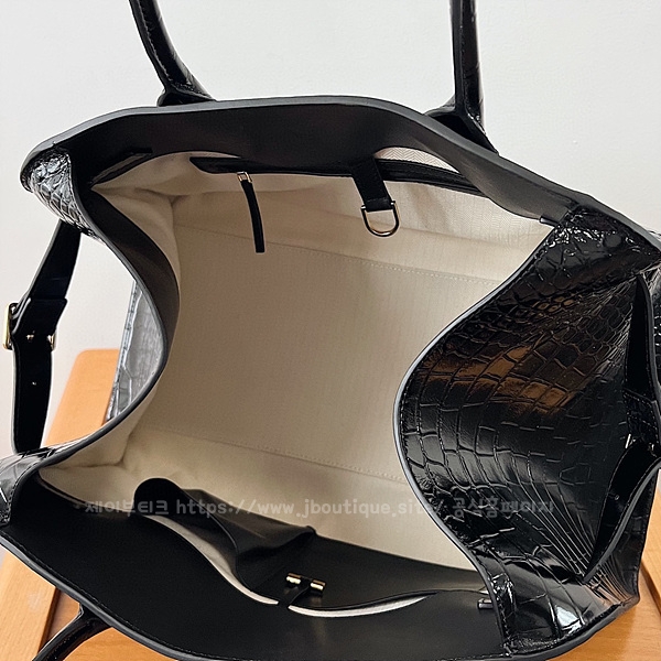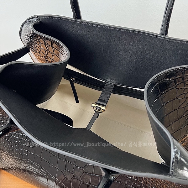벨트가 장식된 거싯 패널 및 내부 토글 클로저.