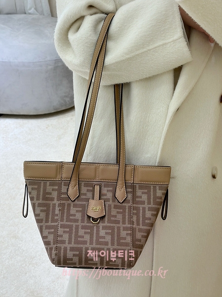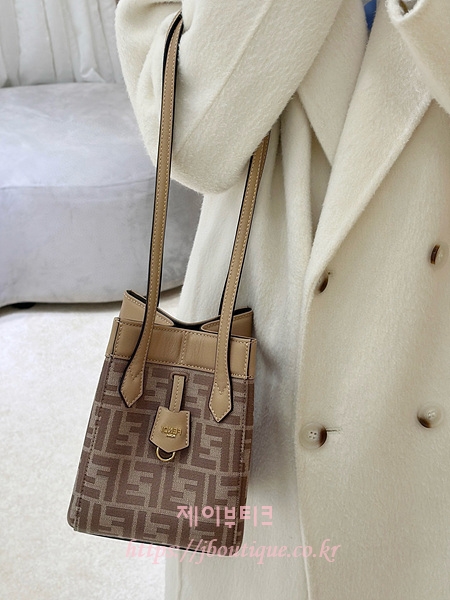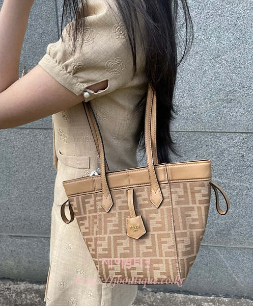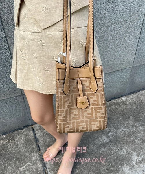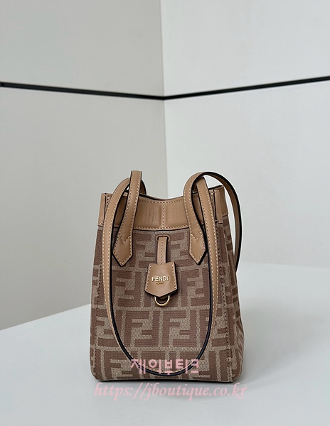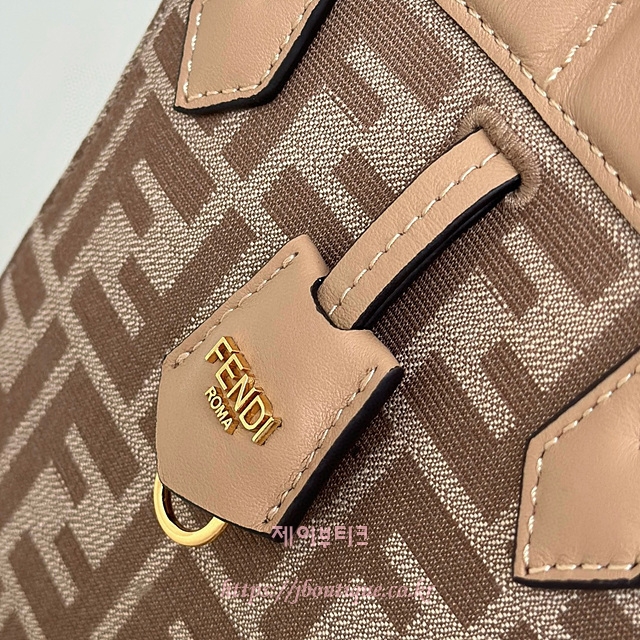베이지와 카푸치노 컬러 송아지 가죽 트리밍의 아이코닉 FF 모티프