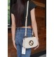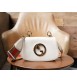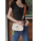 토널 레더 또는 웹(Web) 스트라이프 형태의 교체 가능한 숄더 스트랩 2개로 화이트 레더 미니백을 완성함.