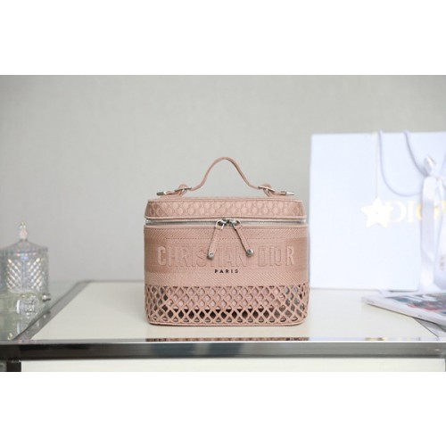 핑크 컬러의 DiorTravel Vanity 클러치입니다.메쉬 자수로 펀칭 효과를 주며, 디올의 정교한 공법이 돋보이는 크리스천