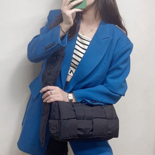 • 패딩 처리한 나일론 소재를 인트레치아토 위빙으로 완성한 미디엄 크로스바디백