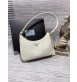 지퍼 클로저와 나일론 라이닝이 있는 호보 스타일의 숄더 백에 메탈 트라이앵글 로고와 가죽 리에디션 키체인으로 장식했습니다.