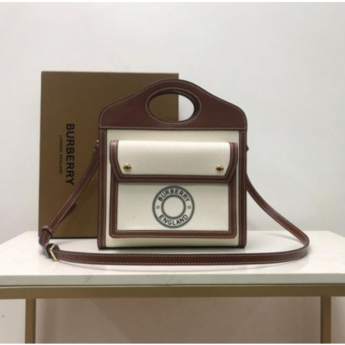 버버리 미니 트라이톤 코튼 캔버스 레더 포켓백