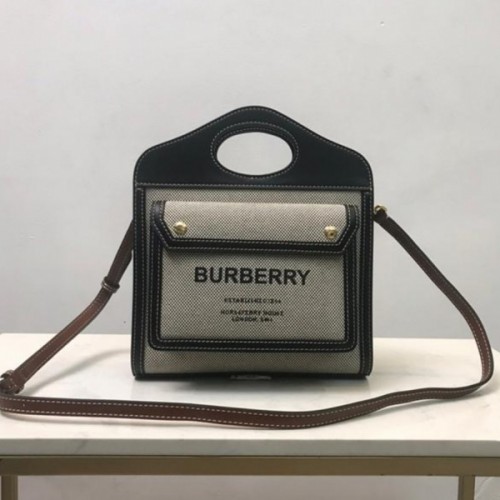 버버리 미니 트라이톤 코튼 캔버스 레더 포켓백