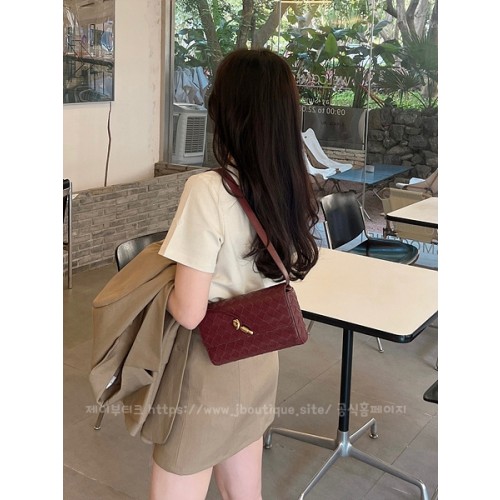 가죽 소재를 인트레치아토 위빙으로 완성한 미니 크로스바디 백으로 메탈릭 놋 잠금장치가 있음