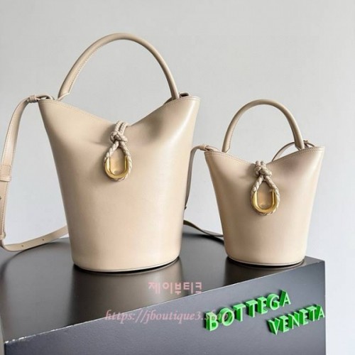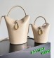 메탈 성분 및 위빙 코드로 구성된 잠금장치를 갖춘 부드러운 송아지가죽 소재의 스몰 크로스바디 버킷 백